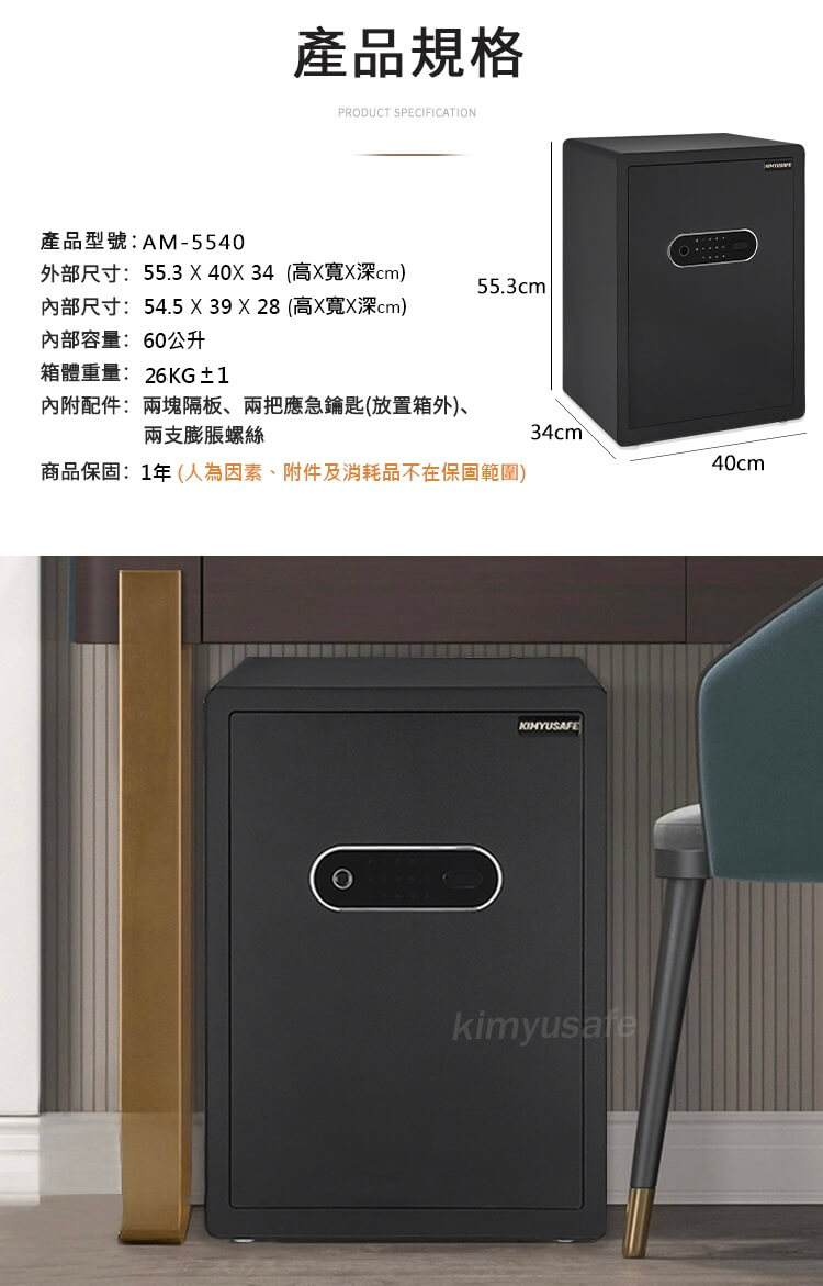 AM-5540 質感智能指紋保險箱 ✔️可放A4資料夾