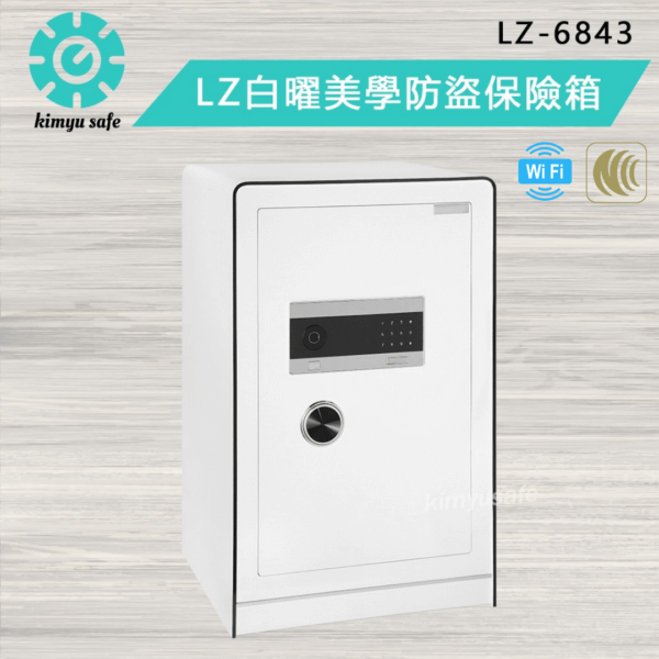 一、LZ-6843 指紋保險櫃使用低碳合金10MM鋼板打造,設置8字型加粗鎖栓5支,三面門栓結合專利T型鎖扣設計,提升安全防盜性。